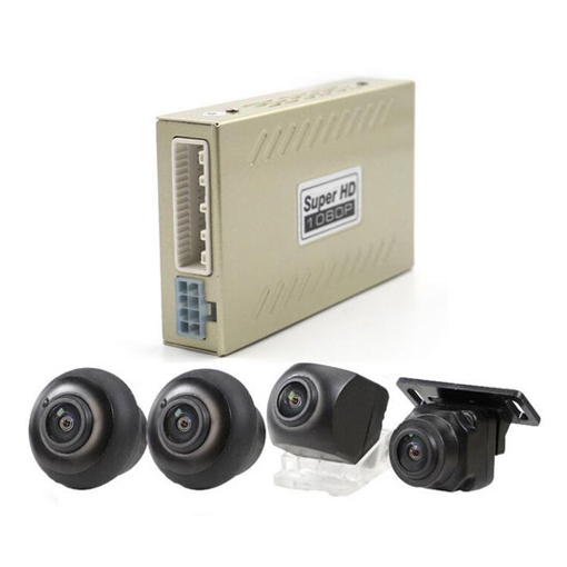 360 degree panoramic dash cam for car, 4 pcs 180° cameras recording real-time traffic status, 2D bird's eye view showing road condition and car position, supporting maximum 32GB USB card, good for reversing/ recording/ replay viewing, easy to installation.