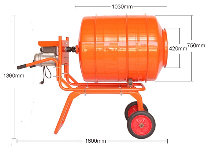 - Large wheels, it's easy to move the mini concrete mixer to anywhere.